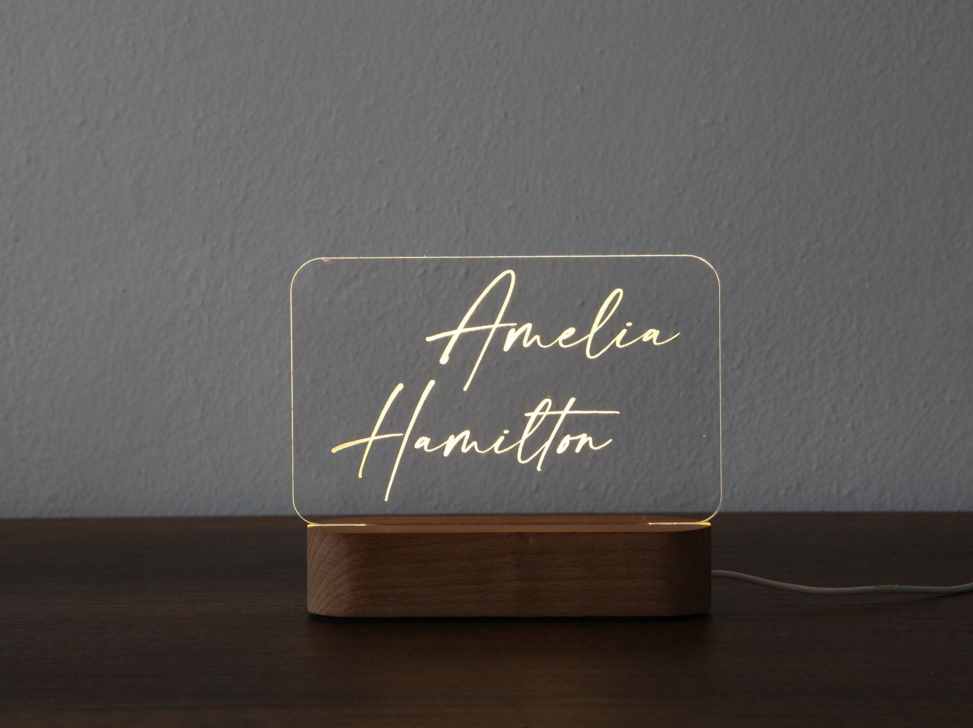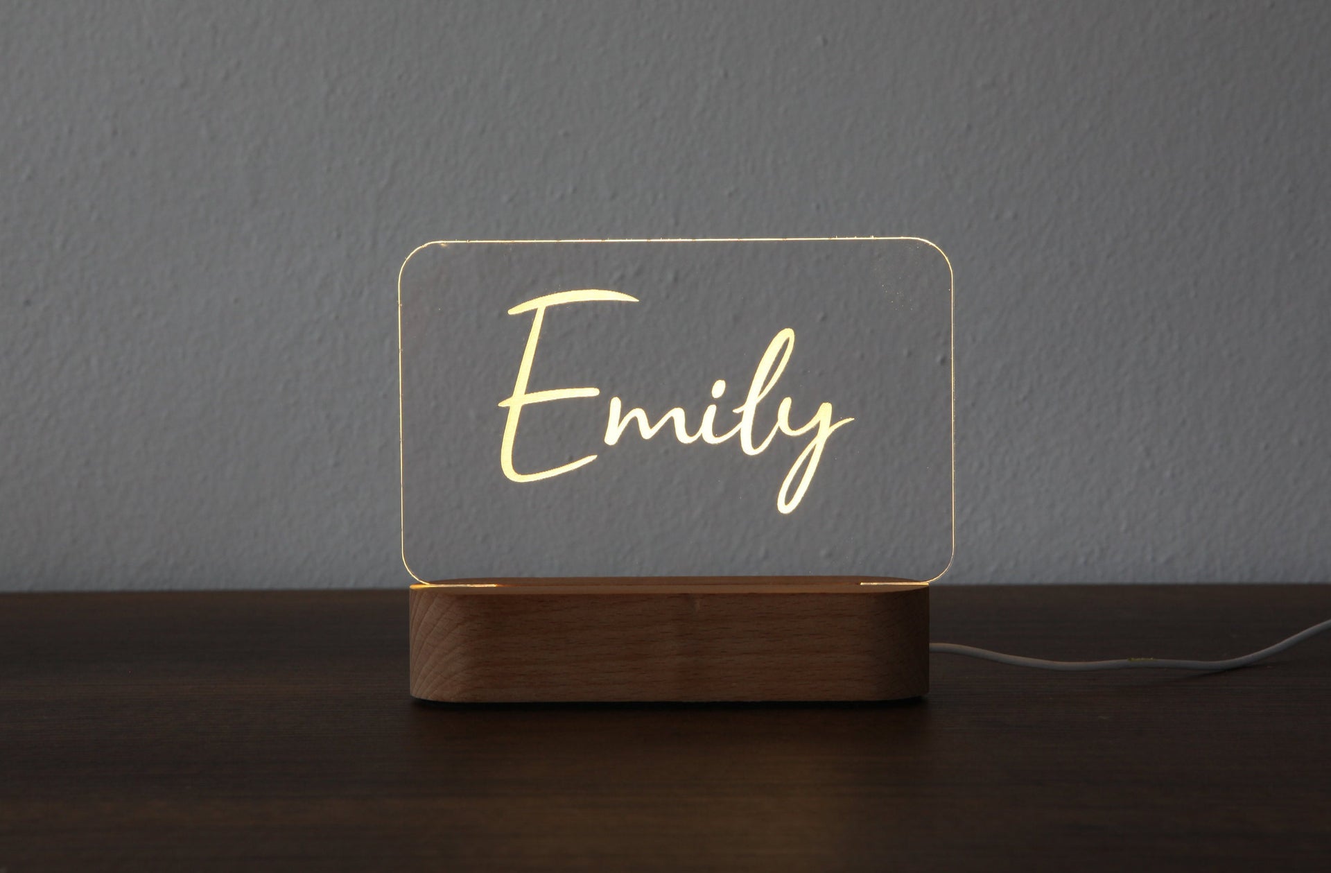 Verleihen Sie Ihrem Zimmer mit diesem wunderschönen, individuellen Nachtlicht aus Plexiglas und Holz Farbe.
