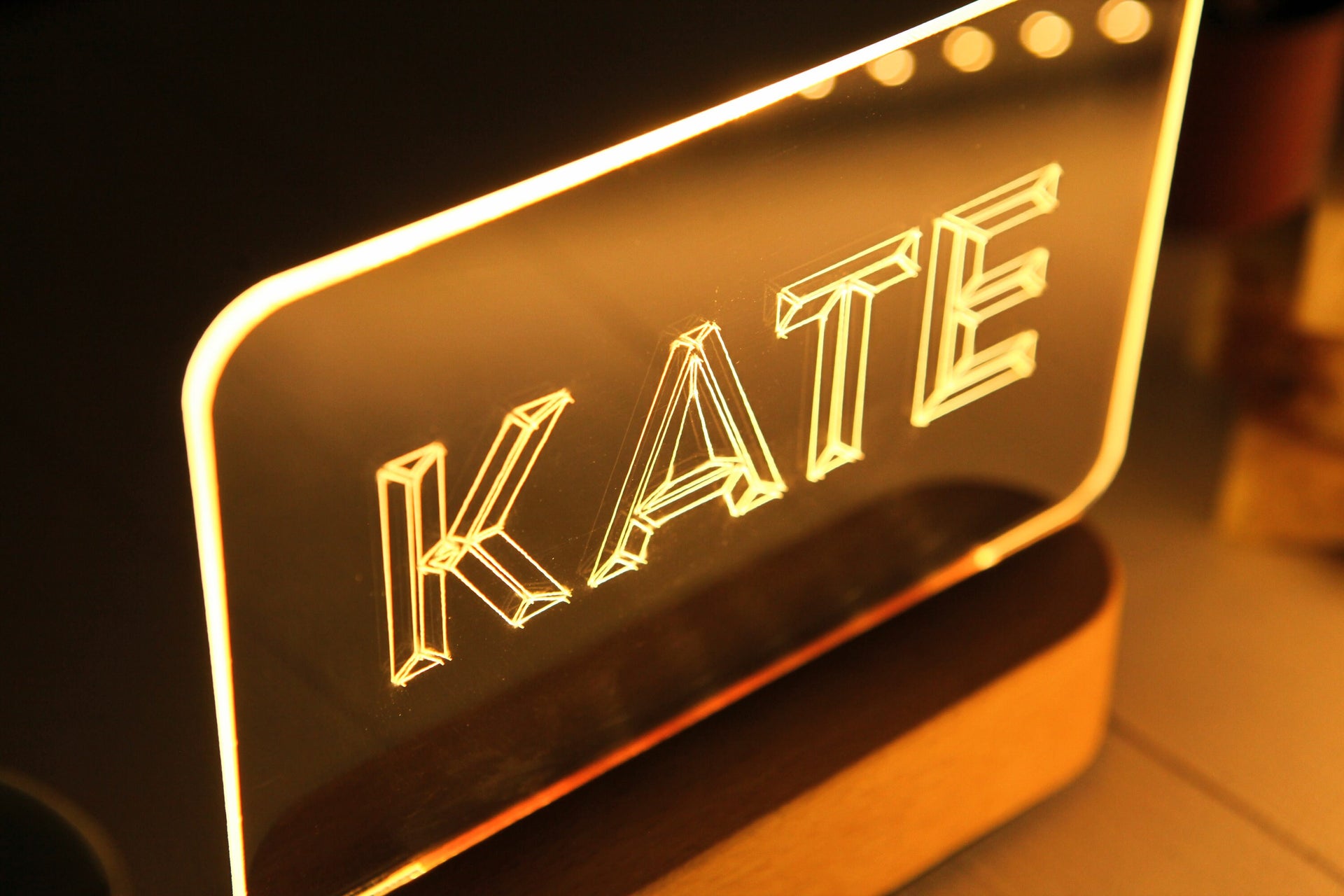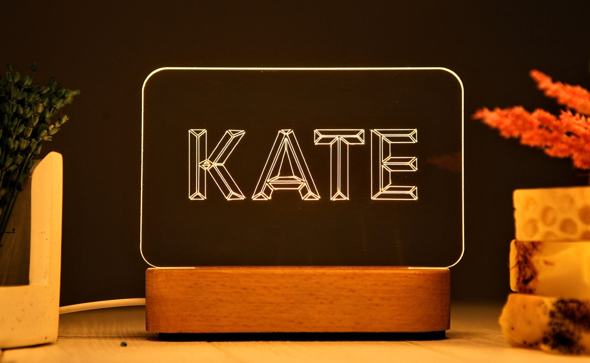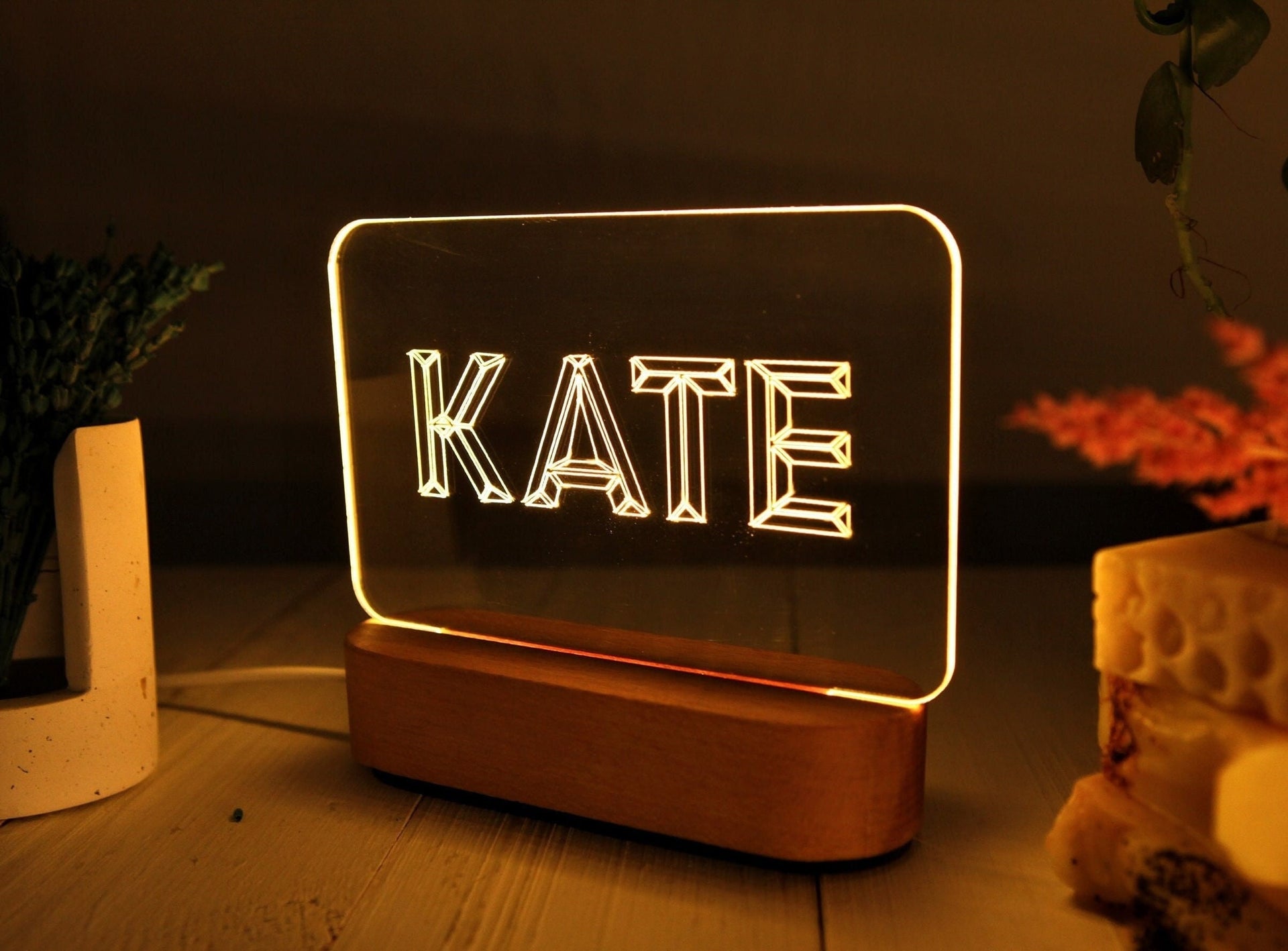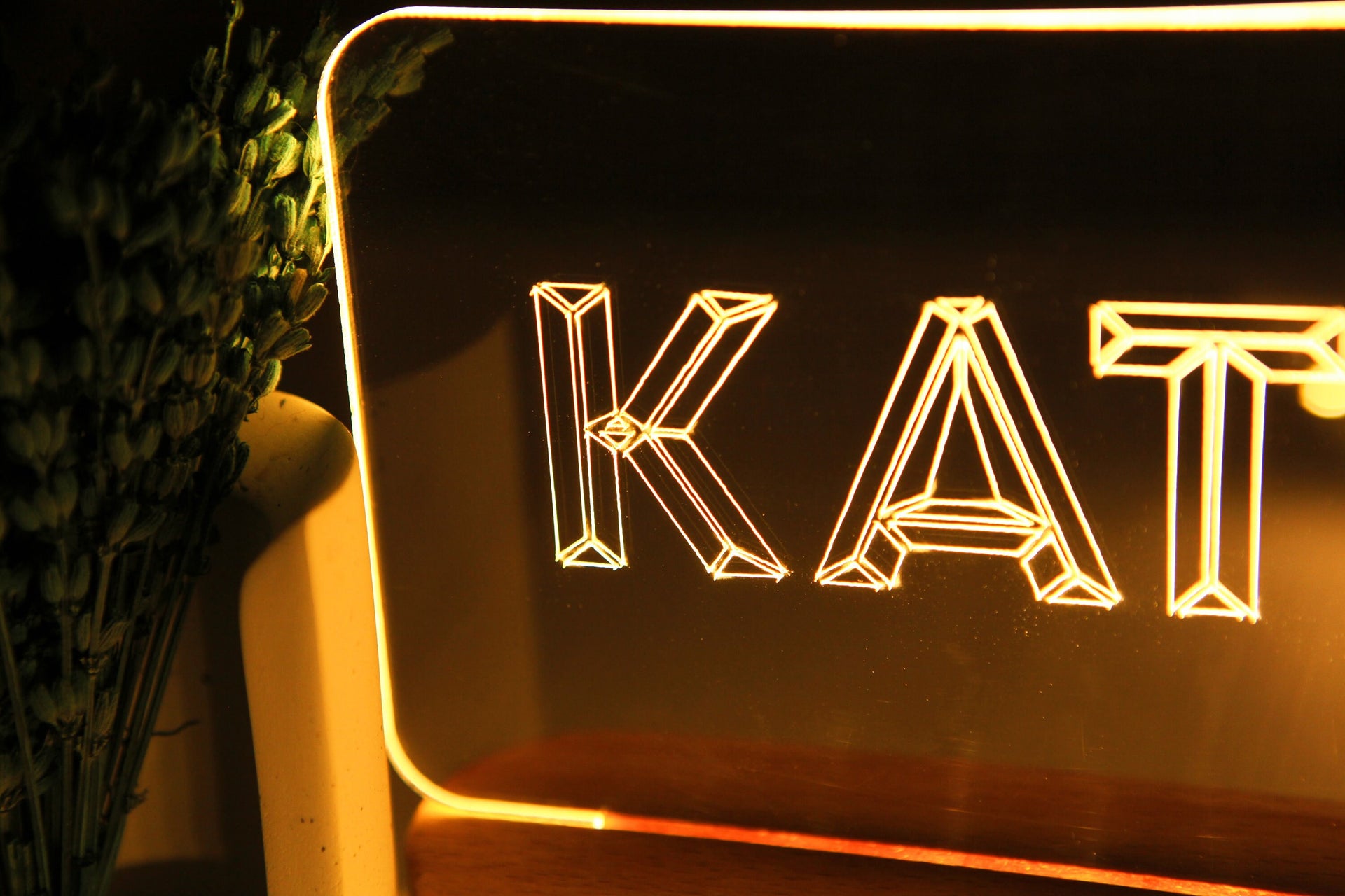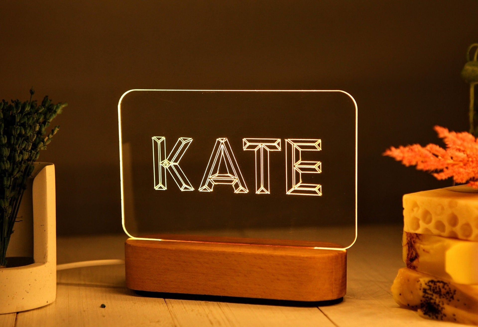 Verleihen Sie Ihrem Zimmer mit diesem wunderschönen, individuellen Nachtlicht aus Plexiglas und Holz Farbe.