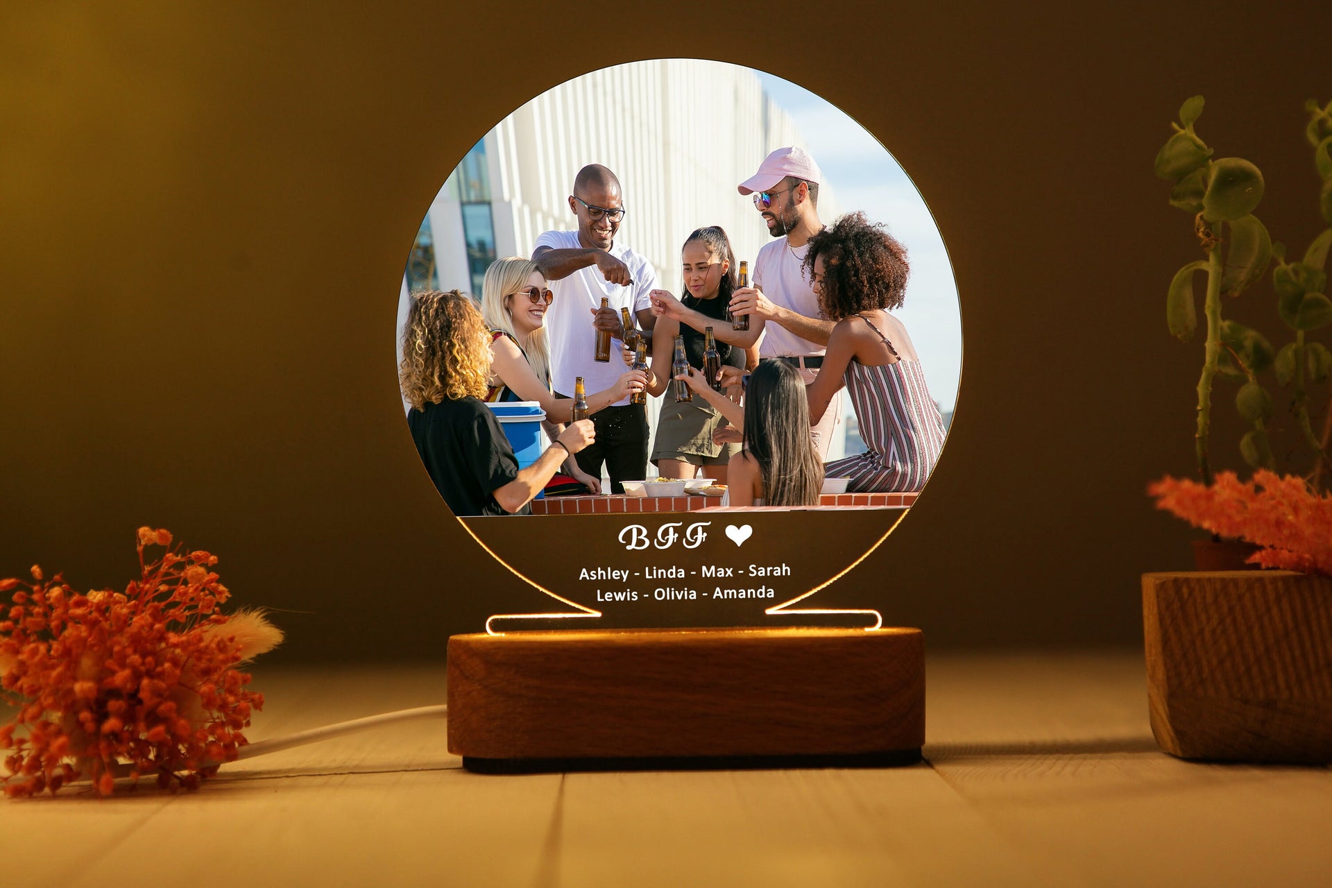 Wählen Sie zunächst das bezauberndste Foto Ihres geliebten Haustiers aus. Dieses ausgewählte Foto wird nahtlos in unsere Nachtlampe integriert und verwandelt sie in ein Kunstwerk, das Ihren Raum sofort erhellt. Unsere Lampe ist mit einem speziell gefertigten Holzsockel und einstellbaren Lichtstärken ausgestattet und bietet sowohl ein praktisches als auch ästhetisches Erlebnis.