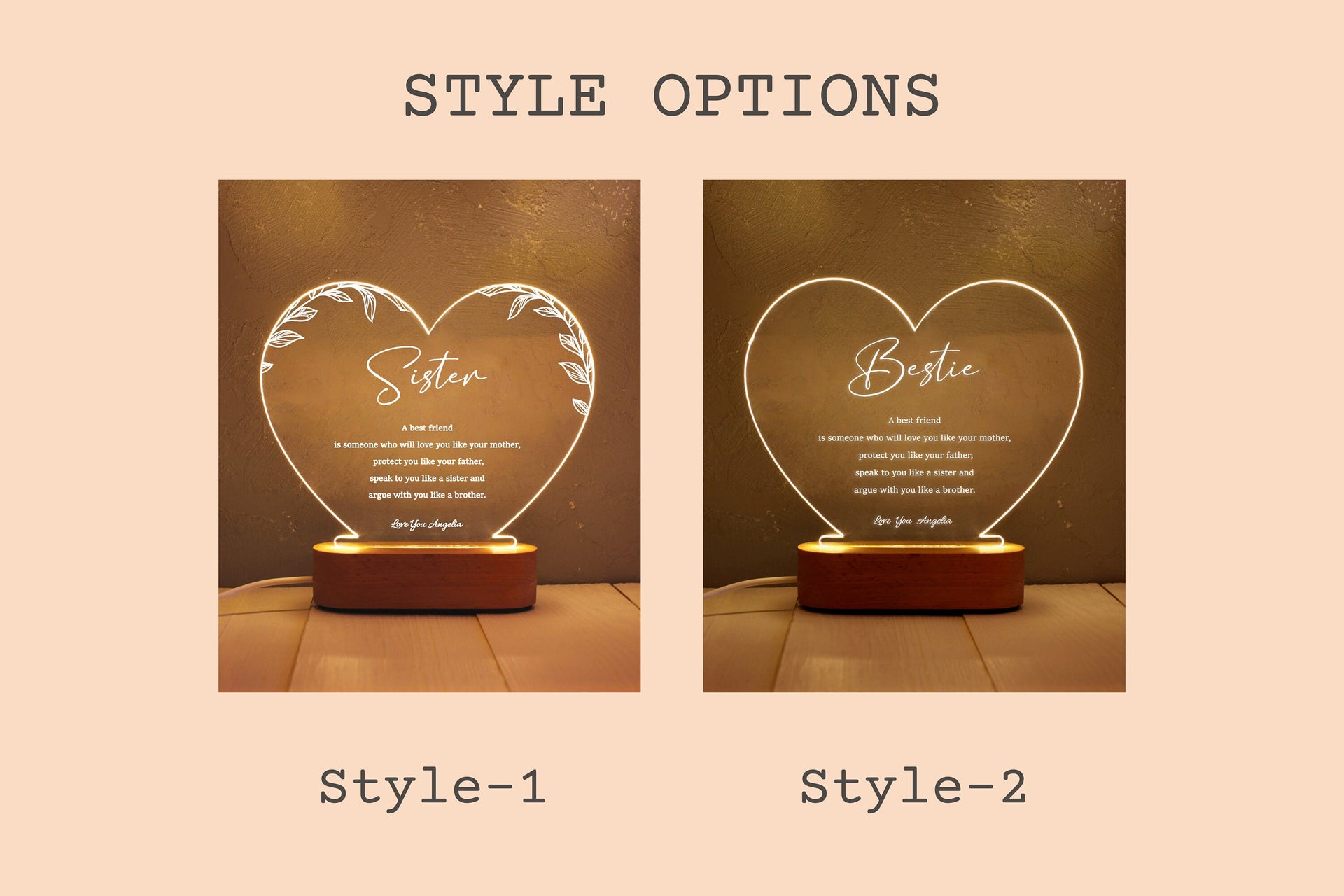 Ob es der Geburtstag Ihrer Schwester, der Schulabschluss Ihres besten Freundes oder einfach ein ganz normaler Tag ist, dieses besondere Nachtlicht wird Sie immer an sie erinnern. Fügen Sie ihre Namen hinzu und wir gestalten es so, dass ein einzigartiges Geschenk nur für Sie entsteht.