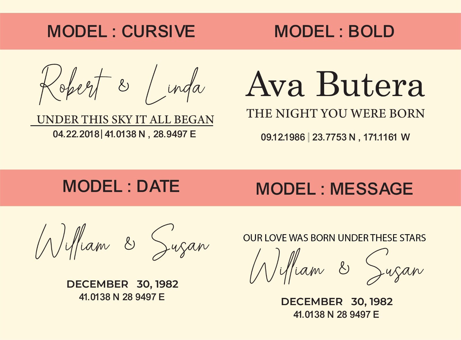 💢💢 The coordinates' location is necessary to generate your personalized star map, which could hold special meaning to you. If you don't provide it, the stars' location on that specific date will be used.