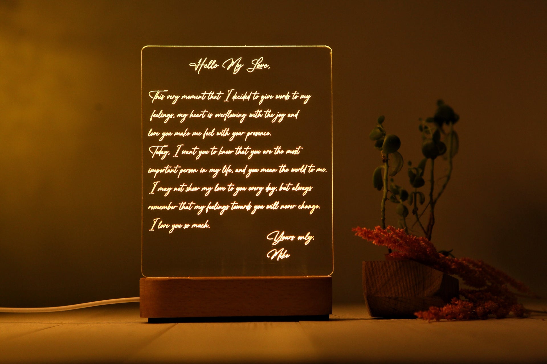 Custom Hand-Written Letter Night Light as Valentines Gift